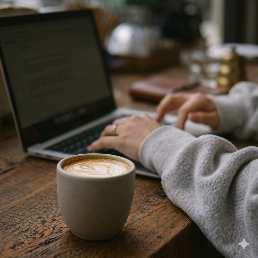 カフェラテを飲みながら、